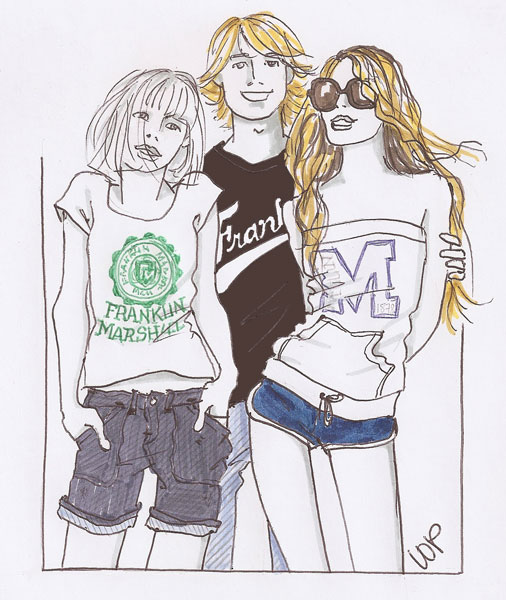 Comme FRANKLIN & MARSHALL sponsorise l'événement, y verrons-nous les bombes de leur désormais célèbre catalogue? Un grand espoir anime les garçons de Calvi. Si vous ne connaissez pas Franklin & Marshall, une mise au point s'impose. C'est une marque Italienne qui a eu l'idée de fabriquer une ligne de sportswear en voyant un vieux T.Shirt du "Franklin & Marshall College" sis à Lancaster en Pennsylvanie. Après autorisation du dit Collège, la marque s'est étoffée de produits d'aspect "vintage" dans un esprit "université Américaine", saupoudré de musique noire, de look fifties, sixties et seventies, le tout réalisé avec goût et intelligence. La marque eut un tel succès que le Collège accepta que chaque année, les prises du vues y soient faites... Avec comme mannequins... les étudiants eux-même! Depuis, le collège Franklin & Marshall est réputé pour la qualité plastique de ses étudiants. Depuis, le catalogue est attendu par nombre d'adolescents rêvant d'un style de vie à la Gossip girl.